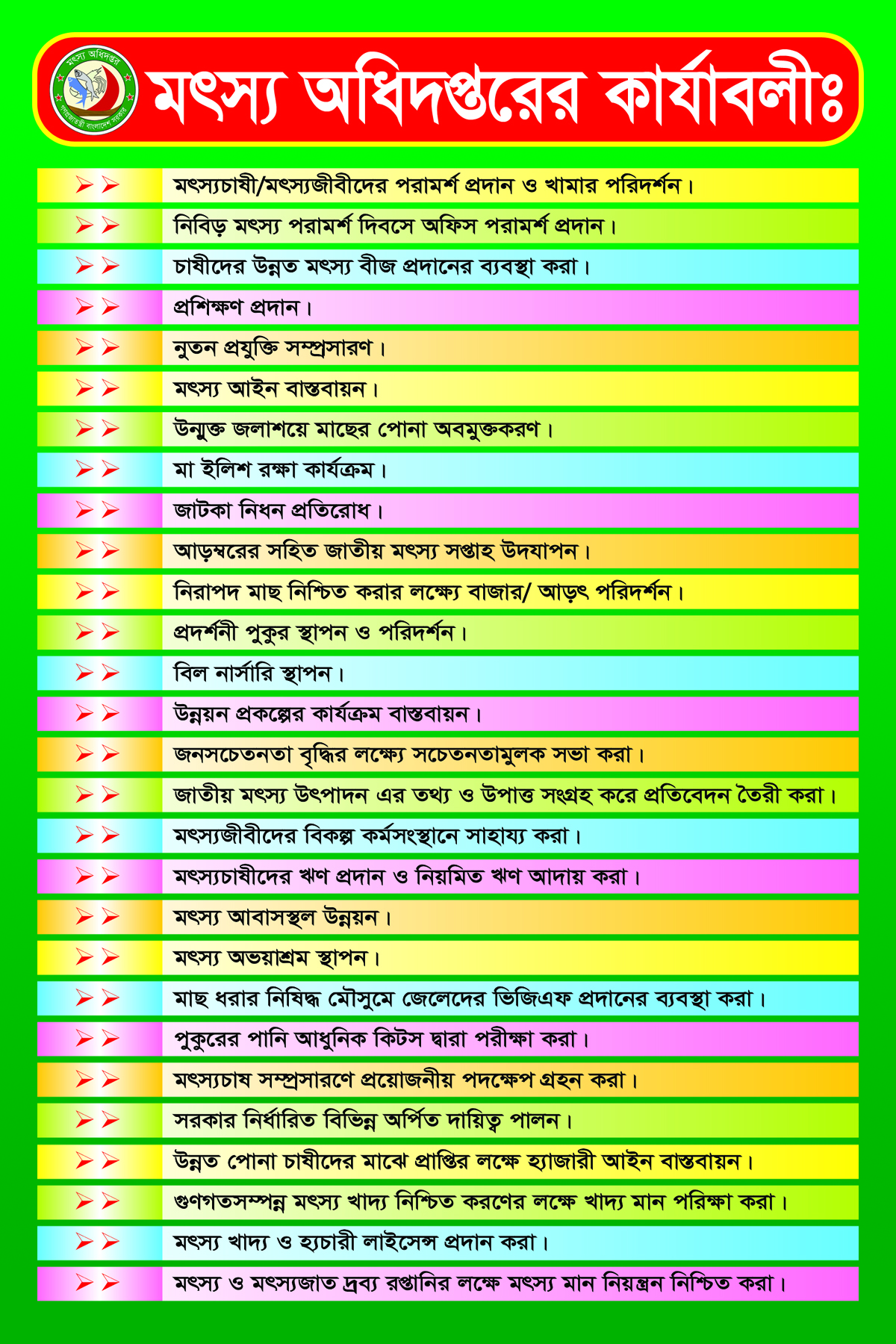 মৎস্যজীবী/সূফলভোগীদের জলাশয় ব্যবস্থাপনা/ আইন প্রতিপালন বিষয়ক সচেতনতা সৃষ্টি /উদ্বুদ্ধুকরণ;
