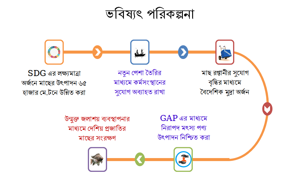 সরকারের নির্বাচনী ইশতেহার, ২০৪১ সালের মধ্যে উন্নত-সমৃদ্ধ দেশে উন্নীতকরণ এবং টেকসই উন্নয়ন অভীষ্ট (এসডিজি)-এ উল্লিখিত লক্ষ্যমাত্রা অর্জনের লক্ষ্যে ৮ম পঞ্চবার্ষিক পরিকল্পনায় (২০২১-২০২৫) মৎস্য সেক্টরে অর্জিতব্য প্রধান লক্ষ্যসমূহ নির্ধারণ করা হয়েছে: